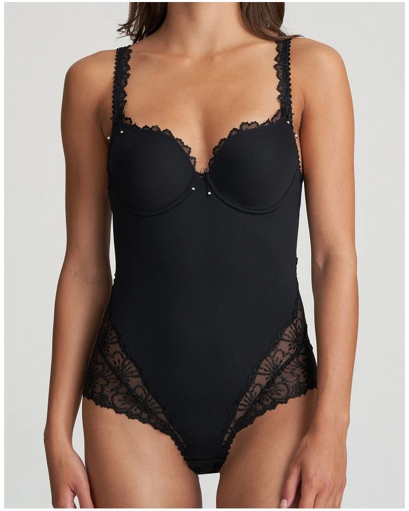 Ce body Marie Jo a une coupe shorty sexy. La broderie se dĂ©ploie gĂ©nĂ©reusement sur les hanches et les fesses. Le bonnet mousse confère un joli galbe rond Ă la poitrine. La ligne de dĂ©colletĂ© est bordĂ©e d’un galon de broderie qui Ă©pouse parfaitement les contours de la poitrine.