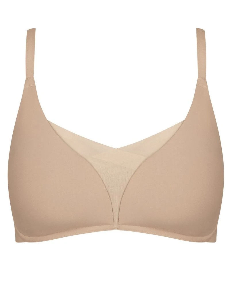 La brassière Triumph de la collection Shape Smart offre un soutien-gorge ampliforme très doux et confortable. Ce modèle est sans armatures mais possède une bande élastique douce semblable à une armature afin de garder un confort optimal. De plus, on retrouve sur le devant une couche de maille croisée pour encore plus de maintien au centre