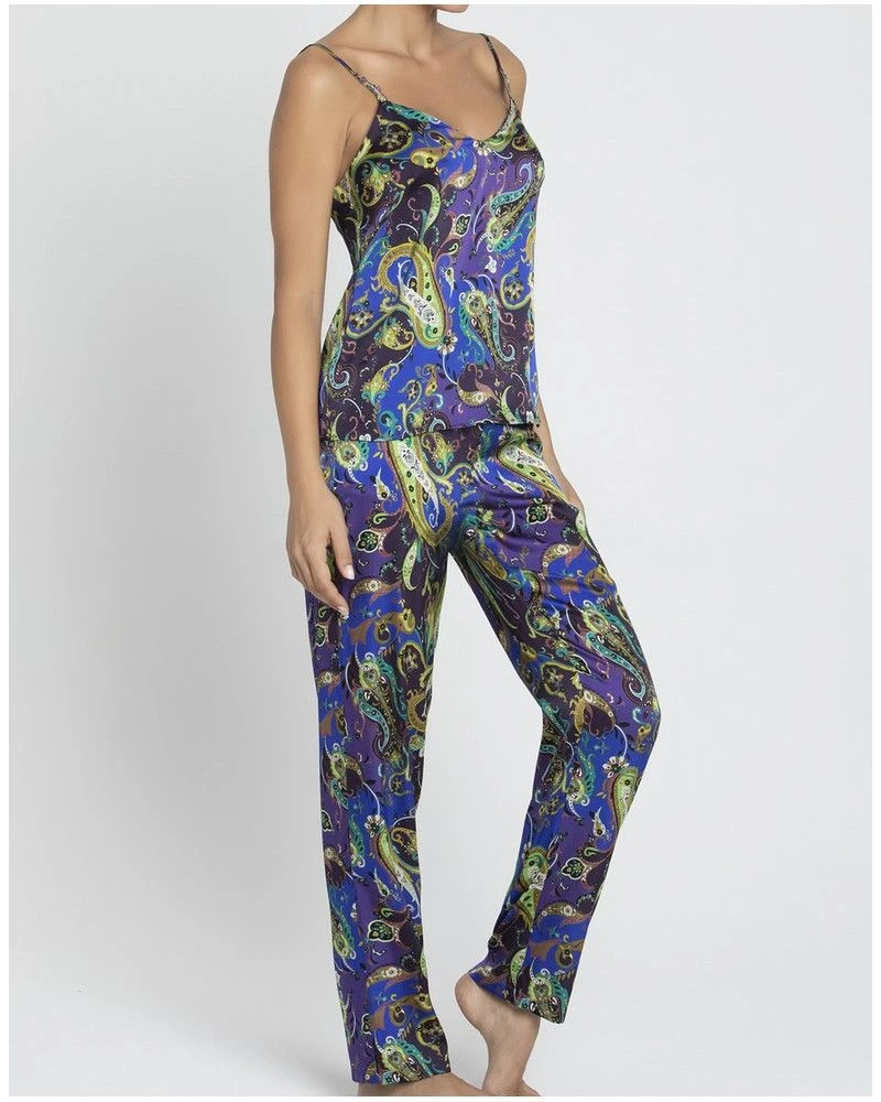 Le Caraco Lise Charmel de la collection Dentelle Cashmer offre un joli décolleté et un dos dégagé, proposant une matière soie imprimé du motif créatif propre à cette gamme, le même motif et la même matière que la corseterie pour un ensemble harmonieux et une silhouette sublimée.