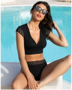 La culotte de bain de la collection Ajourage Couture vos offre une forme sĂ©duisante agrĂ©mentĂ©e d’une bande ajourĂ©e sur le devant au niveau de taille.