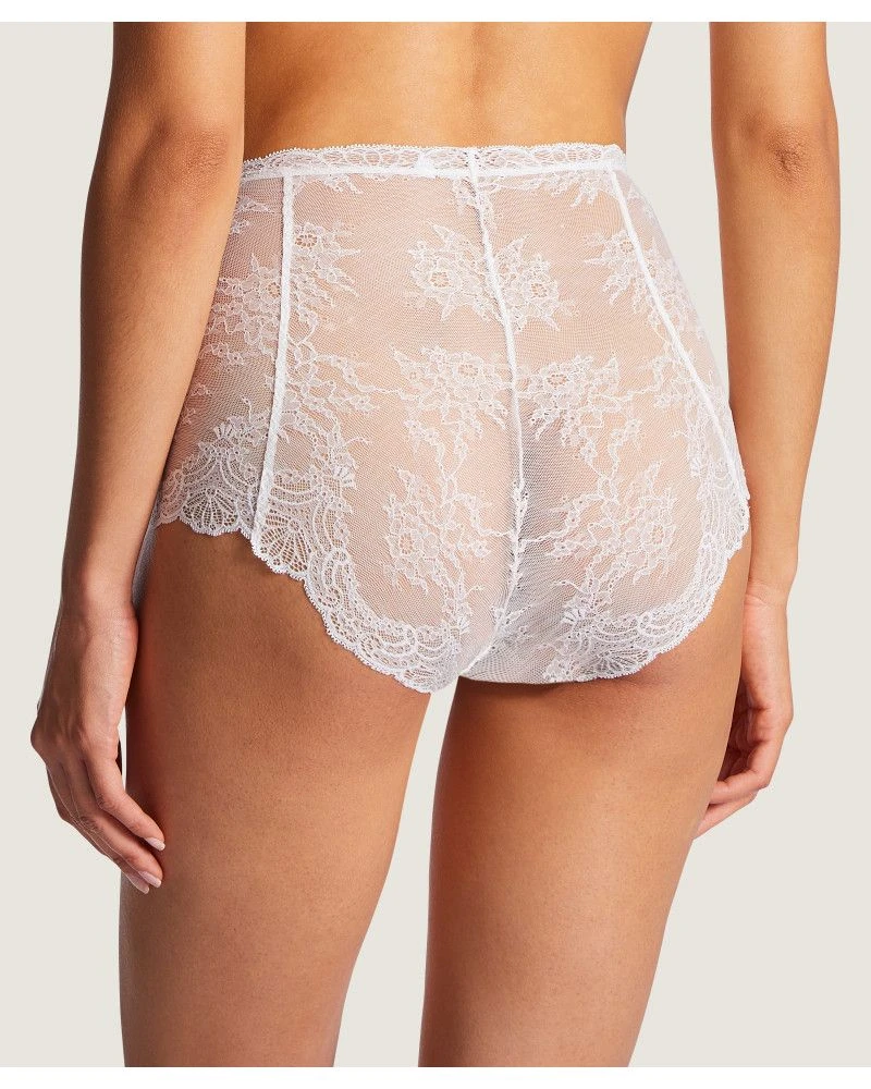 La culotte taille haute Aubade de la collection Danse des Sens possède un galon en dentelle sur la fesse. Elle épouse parfaitement vos hanches pour une silhouette féminine et chic.