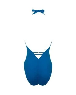 Le maillot de bain séduction dos plongeant de la collection Ajourage Couture à nouer au tour de cou arbore des détails élégants en dentelle au niveau des bretelles.