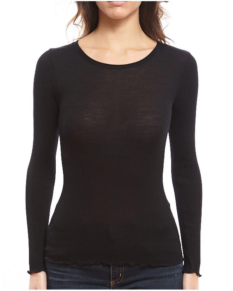 Ce maillot de corps col rond avec un biais en satin Oscalito propose une maille plissĂ©e en laine et soie douce et confortable. Ce modĂšle est l’un des grands standards de la marque et est totalement fabriquĂ© en Italie (70% laine, 30% soie). Couleur – Noir.
