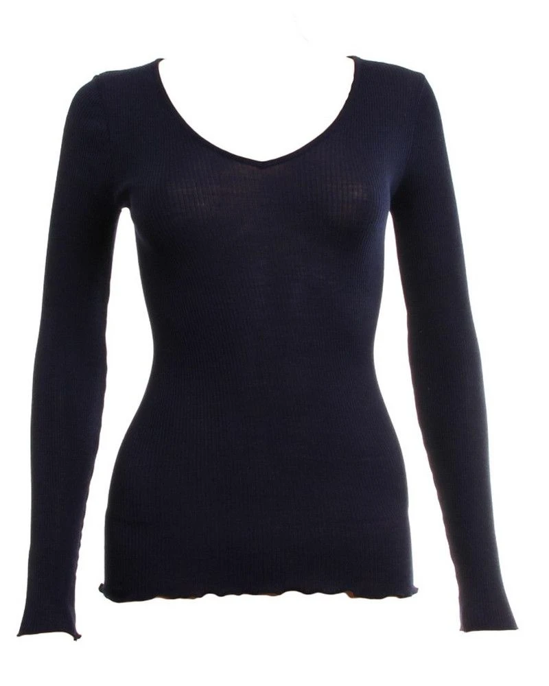 Ce maillot de corps col V avec un biais en satin Oscalito propose une maille plissĂ©e en laine et soie douce et confortable. Ce modĂšle est l’un des grands standards de la marque et est totalement fabriquĂ© en Italie (70% laine, 30% soie). Couleur – Bleu.