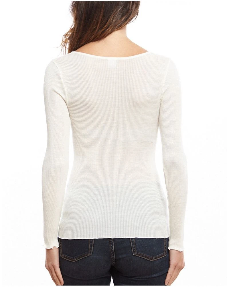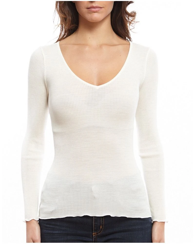 Ce maillot de corps col V avec un biais en satin Oscalito propose une maille plissĂ©e en laine et soie douce et confortable. Ce modĂšle est l’un des grands standards de la marque et est totalement fabriquĂ© en Italie (70% laine, 30% soie). Couleur – Champagne.