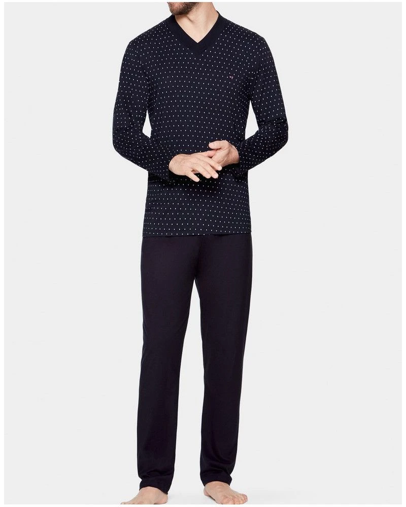 Le pyjama long de la marque Eden Park propose un ensemble loungewear composĂ© d’un t-shirt Ă manches longues et d’un pantalon long.