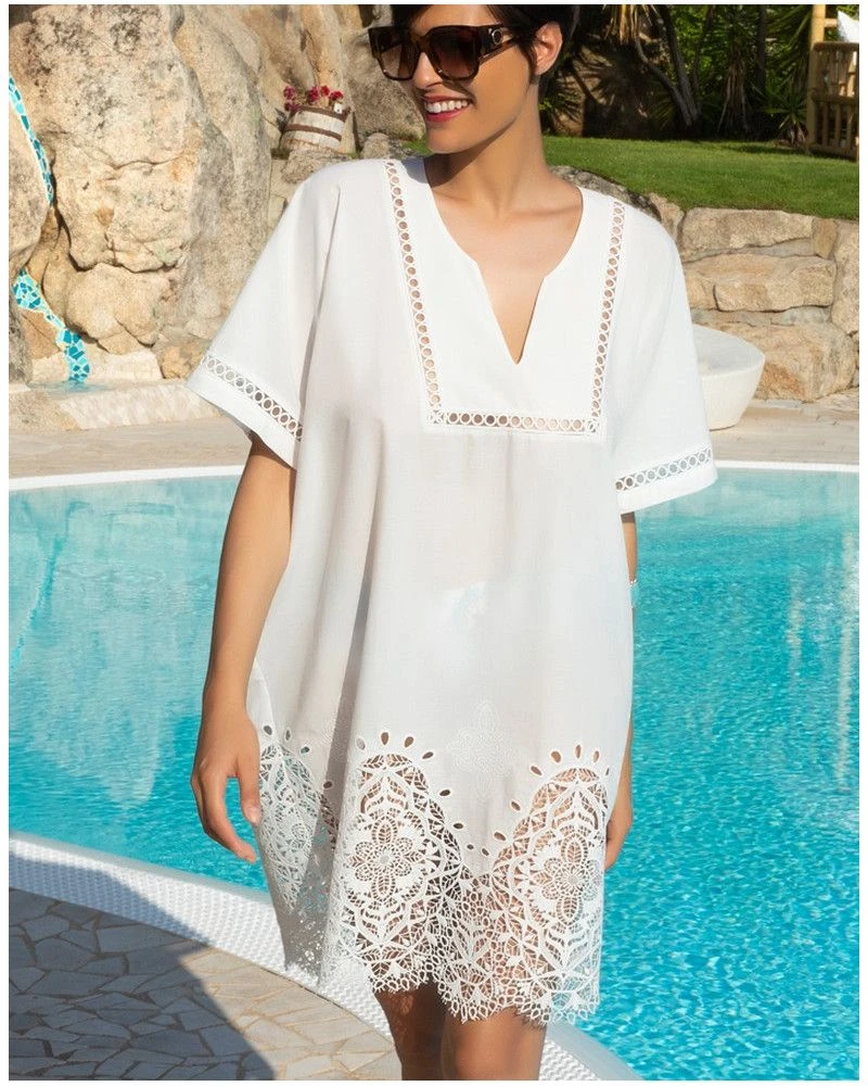 La Robe de plage Lise Charmel de la collection OdyssĂ©e Cashmer vous offre un mĂ©lange de confort et d’Ă©lĂ©gance qui viendront parfaitement s’assortir avec un maillot de bain de la mĂŞme collection.