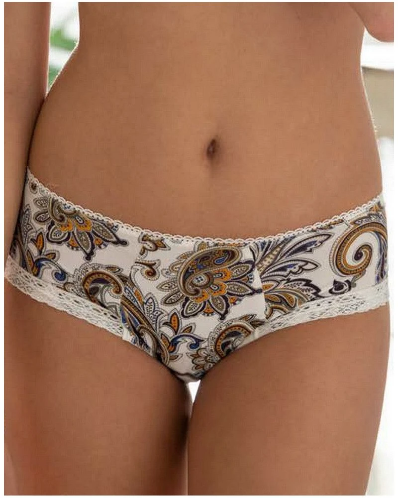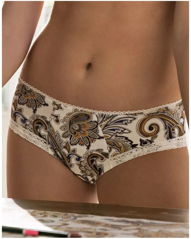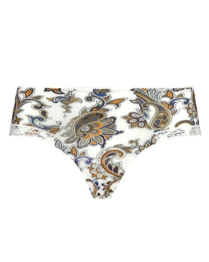 Le shorty Antigel de la collection Evasion Cashmer offre un look sexy et féminin grâce aux fantaisies graphiques du motif. Pour plus de confort, la bordure élastique du string est en polyamide élasthanne.