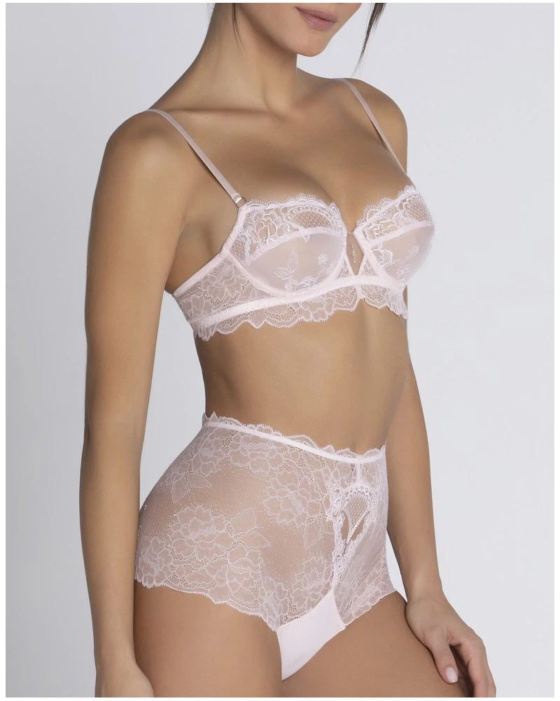 La collection Sublime en dentelle de la marque Lise Charmel propose une apparence contemporaine qui exprime le savoir-faire luxueux de la marque. Par sa broderie florale raffinée, elle sublime la finesse et la légèreté de la dentelle française Leavers. Cette gamme offre des coupes épurées et audacieuses mettant en valeur la transparence des matières, soit la sensualité de la peau.