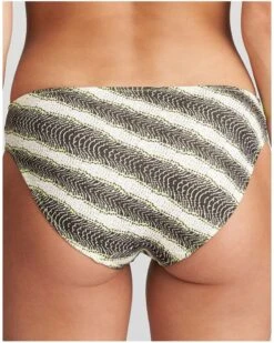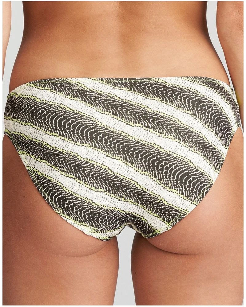Bas de bikini élégant, à rayures, avec un accent jaune fluo à la taille. La doublure fluorescente donne une touche de fraîcheur supplémentaire à l’imprimé rayé. Produit avec 79% de fils recyclés. Mélangez un imprimé serpent très tendance, des rayures et du jaune fluo et vous obtiendrez Hello Yellow !