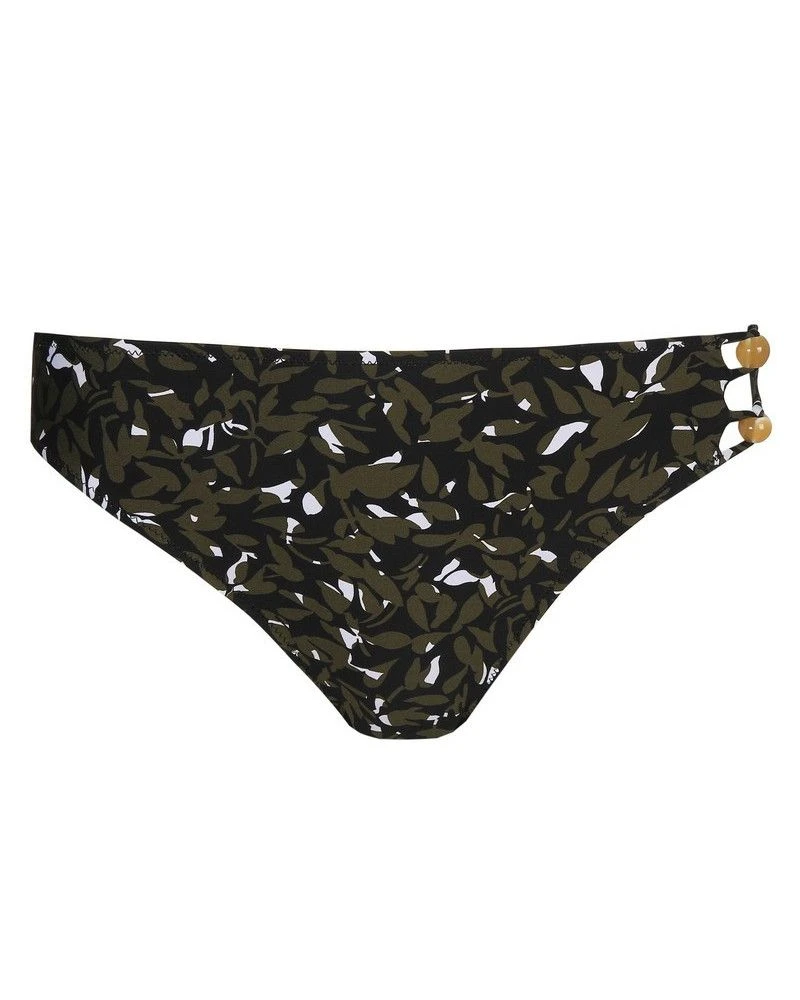 Bas de bikini élégant avec un imprimé tendance et estival. Les bretelles sensuelles et les perles sur les hanches ajoutent une touche frivole. Rainforest est un motif de jungle tropicale en noir, vert et blanc.