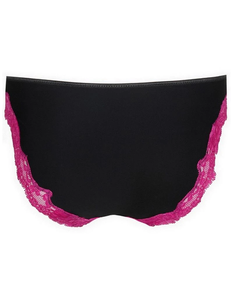 Un slip brĂ©silien subtilement dĂ©corĂ© de broderies originales Ă l’avant. Ce bas Ă©lĂ©gant enveloppe parfaitement les fesses.