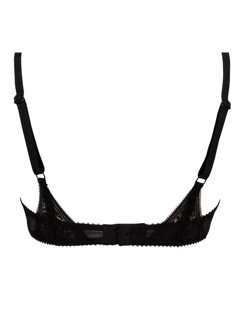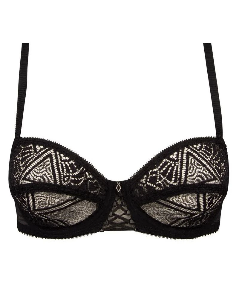 Le soutien-gorge à armature de la collection Un amour de Déco Folies offre une dentelle jacquard aux motifs géométriques originaux, aux bretelles fantaisies effet ruban plissé, travaillées en continues pour une plus grande liberté de réglage.