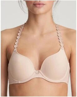 Soutien-gorge rembourrĂ© avec une coupe en forme de coeur. La coupe recouvre une grande partie des seins en haut. Le dĂ©colletĂ© s’Ă©lève au-dessus des seins, plongeant profondĂ©ment entre eux. Dos droit en tulle transparent. Les bretelles peuvent ĂŞtre portĂ©es Ă l’Ă©paule ou autour du cou.