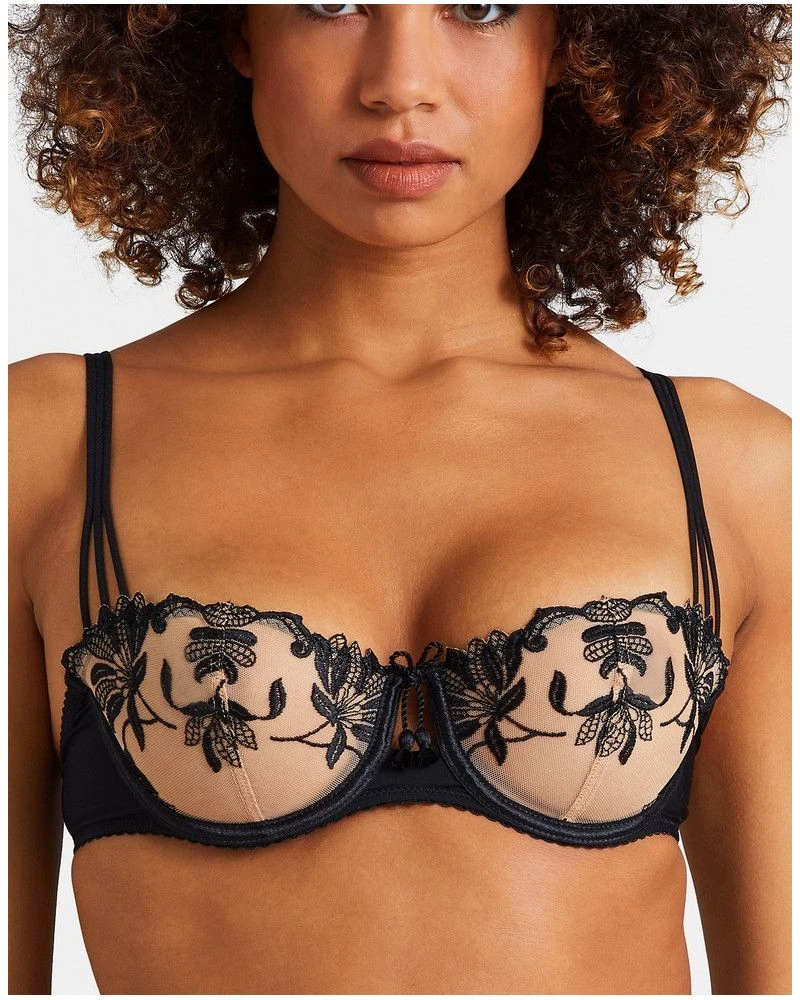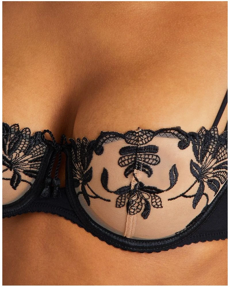 Le soutien-gorge corbeille Lovessence de la marque de lingerie Aubade propose une forme valorisante et dĂ©licate, agrĂ©mentĂ©e d’une broderie florale ravissante.