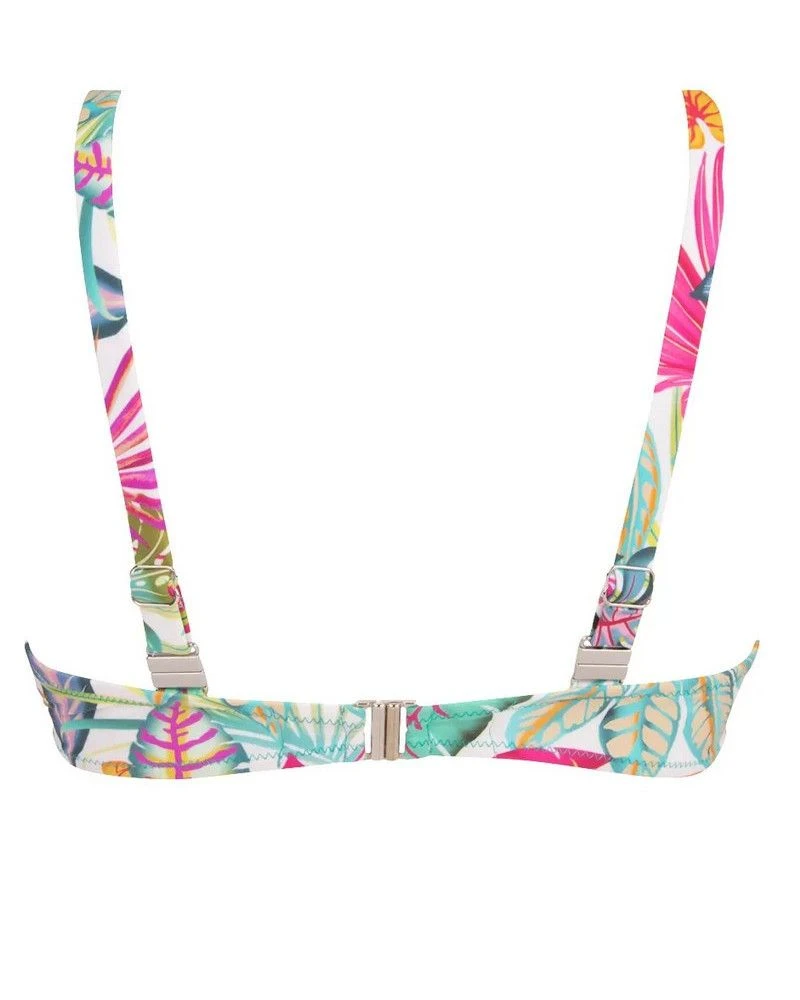 Soutien-gorge de bain triangle à armature de la collection La Muse Des Iles Antigel. Ce soutien-gorge offre un décolleté plongeant et des bretelles à porter droites ou croisées avec des crochets à clips.