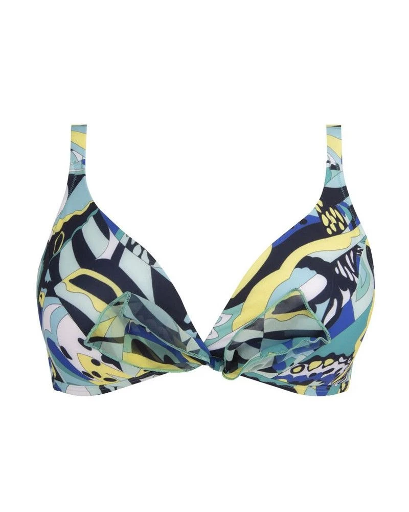 Ce soutien-gorge de bain offre un décolleté très flatteur. Les coques triangles sans armature proposent un maintien tout en confort. Les bretelles sont multipositions et réglables avec un crochet à clips.