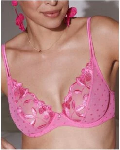 Broderie raffinée et tulle à pois ludiques : voilà les ingrédients qui rendent ce soutien-gorge à armatures si raffiné et élégant. Le soutien-gorge est ultra-féminin et affiche un style rétro.