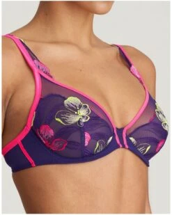Ce soutien-gorge à armatures estival et léger affiche un décolleté plongeant pour un ajustement sensuel ! Le motif floral presque abstrait dans les tons flashy attire le regard sur les bonnets transparents. Les fines bretelles ajoutent une touche osée supplémentaire.