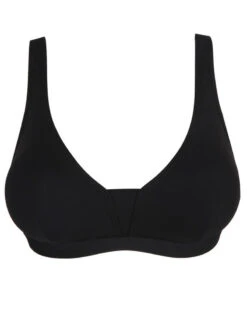 Ravissant haut de bikini triangle sans armature, dans une maille balnéaire unie. Bonnets en mousse amovibles et bretelles réglables en longueur. La tendance indémodable : des looks épurés en noir intemporel.