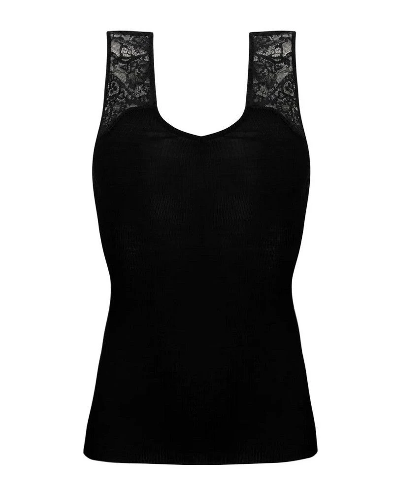 Le tee-shirt sans manche bien-ĂȘtre Lise Charmel de la collection Plaisir Caresse donne une allure sensuelle et Ă©lĂ©gante grĂące Ă sa touche de dentelle en dĂ©colletĂ© tout en Ă©pousant la silhouette.