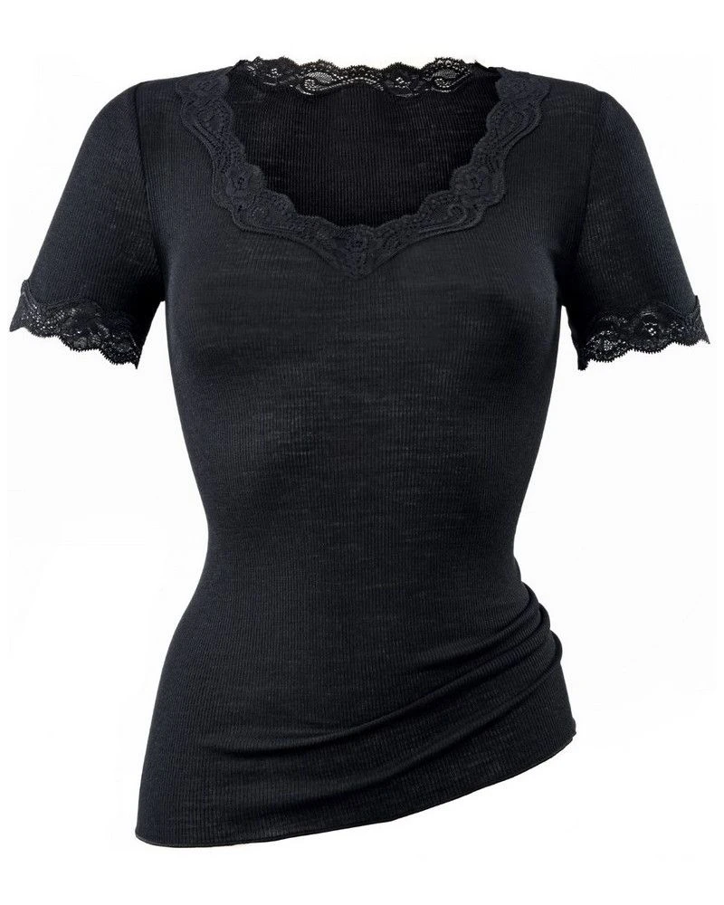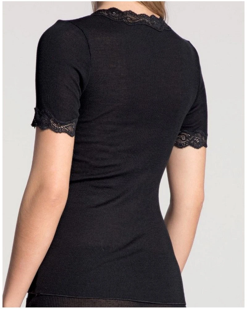Le top manches courtes Richesse Lace de la marque Calida est le mĂ©lange parfait entre la douceur de la laine mĂ©rinos et la fluiditĂ© de la soie. Ces fibres sont thermorĂ©gulantes, ce qui permettra Ă ce t-shirt de vous maintenir au chaud tout l’hiver. De la dentelle fine vient agrĂ©menter les manches et le col de ce t-shirt pour un look sĂ©duisant et raffinĂ©.