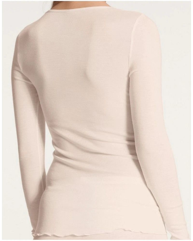 Le top Ă manches longues True Confidence de la marque Calida est le mĂ©lange idĂ©al entre laine de mĂ©rinos et soie. Ces matières sont connues pour ĂŞtre thermorĂ©gulantes, ce qui vous permettra d’ĂŞtre bien au chaud tout l’hiver. OrnĂ© de liserĂ©s en satin ce top offre un look chic et confortable.